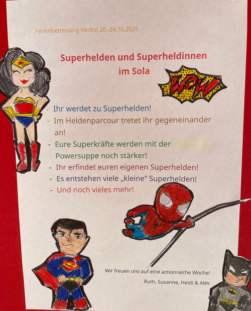 Ferienbetreuung ab 7.45 Uhr besetzt. Die Ferienbetreuung kann wöchentlich gebucht werden.